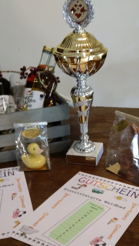 Foto rechts: Siegpreise: vielen Dank für Sach- und Geldpreise