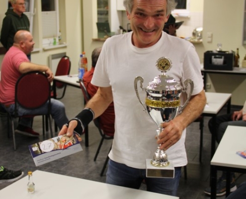 Am 17. Oktober fand das 20. Gröberner Dorfskaten im Haus Grobere statt. 26 Skatspieler und eine Skatspielerin nahmen an diesem Skatturnier mit 2 x 24 Spielen teil. Die Sitzplätze an 6 x 4-er Tischen und 1 x 3-er Tisch wurden ausgelost. Nach der 1. Runde führte Matthias Schmidt mit 1195 Punkten, zweiter war Günther Herrig mit 966 Punkten, Dritter war Franz Gottschaldt mit 953 Punkten. Diese 2 Skatspieler konnten ihr gute Platzierung in der 2. Runde nicht verteidigen. In der 2. Runde erreichte Matthias nur noch 485 Punkte, wurde aber trotzdem Sieger mit insgesamt 1680 Punkten! Ihm wurde der neue Wanderpokal Gröberner Dorfskat überreicht. Dieser tolle Pokal wurde von Edgar Hoffmann gesponsort. Er hat diesen Pokal herstellen und die Sieger der letzten 19 Jahre eingravieren lassen. Dafür recht herzlichen Dank und auch der Zusage, die Sieger der nächsten Jahre eingravieren zu lassen. Zweiter dieses Turnieres wurde Gunther Dürichen mit 1548 Punkten, weil er in der 2. Runde 976 Punkte erreichte. Dritter mit 618 + 826 = 1448 Punkten wurde Michael Stelzner. Die Skatrunden fanden in angenehmer und diskussionsfreudiger Atmosphäre statt. Wir möchten hiermit Emma Stelzner für den Service an diesem Abend mit Getränken, Bockwurst und Brötchen danken. Michael Stelzner, der seit 2006 das Dorfskaten organisiert, hat mit großem Aufwand die letzten 19 Jahre analysiert und ausgewertet, u.a. Punkte vergeben für die Plätze 1 bis 10 im jeweiligen Jahr, die erreichte höchste und niedrigste Punktzahl, die höchste Schnapszahl im + und – Bereich. Er hatte mit seiner Frau Simone viele kleine Preise vorbereitet, die er dann mit viel Spaß und Freude an die einzelnen Skatspieler überreichte. Es war eine tolle freudige Skatspielerrunde! Michael hatte mit Abstand auch die meisten Punkte in der Gesamtauswertung (93) und als Dankeschön für die jahrelange Organisation wurde ihm ein Fass Becks überreicht. Simone hat 19 Jahre lang die Preise eingekauft und schön verpackt, deshalb wurde ihr ein Blumenstrauß nach Hause gebracht. Den Platz 2 der 19 Jahre-Auswertung belegte Edgar Hoffman mit 72 Punkten und Matthias Schmidt wurde mit 46 Punkten 3. Michael hatte auch als Einziger in den 19 Jahren ein Grand Ouvert. Wer so viel Glück beim Skat hat, muss es auch im Lotto 6 aus 49 haben, deshalb wurde ihm ein Lottoschein mit den Zahlen von seinem Glückstag überreicht. In diesem besonderen Jahr wurden die Skatspieler persönlich eingeladen, die auch in den letzten Jahren dabei waren. Bedingung für die Teilnahme am 20. Dorfskaten war außerdem, ein schön verpacktes Geschenk im Wert von mindestens 20 € mitzubringen. Die Vergabe der Preise erfolgte per Los. Als Erster konnte der Platz 20, Paul Gottschaldt (669 Punkte), ein Los ziehen. Es war ein großer Sack Grillkohle. Danach konnte Matthias als Sieger ein Los ziehen, dann Gunther usw. Es waren viele tolle Preise dabei, u.a. Gutscheine für 1 Hase, 1 Ente, 1 Karpfen, 50 € TTM, 40 € Tanken bei ARAL, 30 € Massage, Einkaufen in Meißen, Wellenspiel und viele schön verpackte Präsente sowie Sachpreise zum Essen und Trinken. Es war ein wunderschöner Abend, der allen lange in Erinnerung bleiben wird. Die letzten sind nach 2 Uhr nach Hause gegangen. Wir danken hiermit den Organisatoren Familie Stelzner, Franz Gottschaldt, Jürgen Riesner und allen, die aktiv zur Gestaltung dieses Skatabends beigetragen haben.