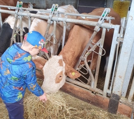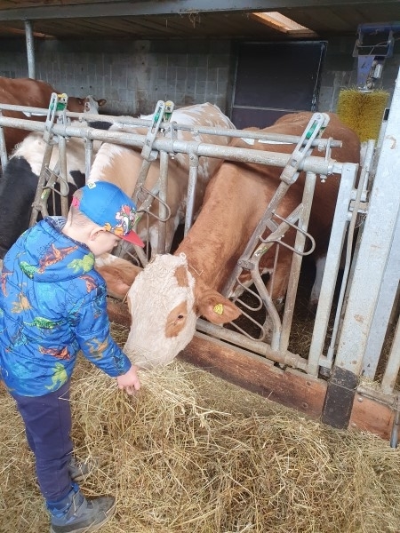 Ein weiteres Highlight war das Füttern der Kühe im Stall, was es uns ermöglicht hat, diese auch einmal zu streicheln. Das war schon etwas anderes als so ein kleines Lämmchen. Trotzdem haben es sich einige Kinder getraut, die Kühe zu streicheln und zu füttern. Andere schauten aus sicherer Entfernung zu.