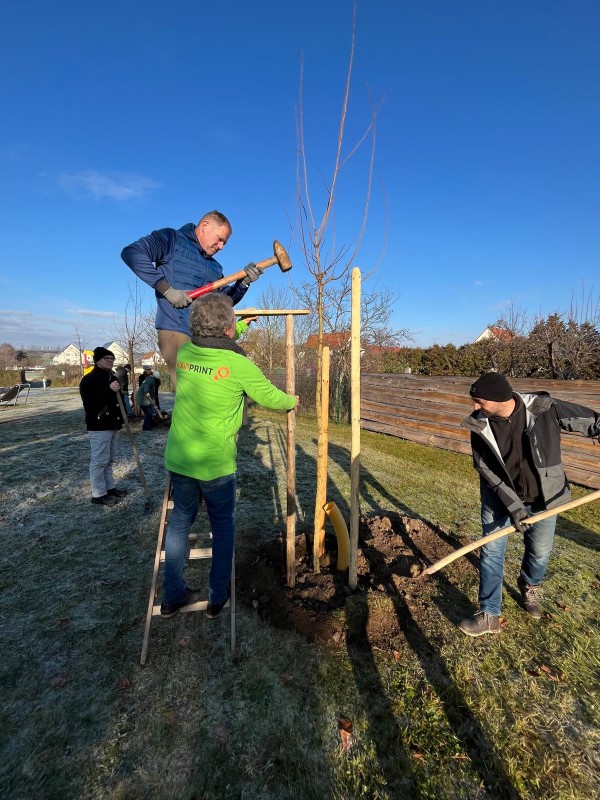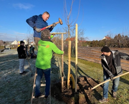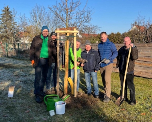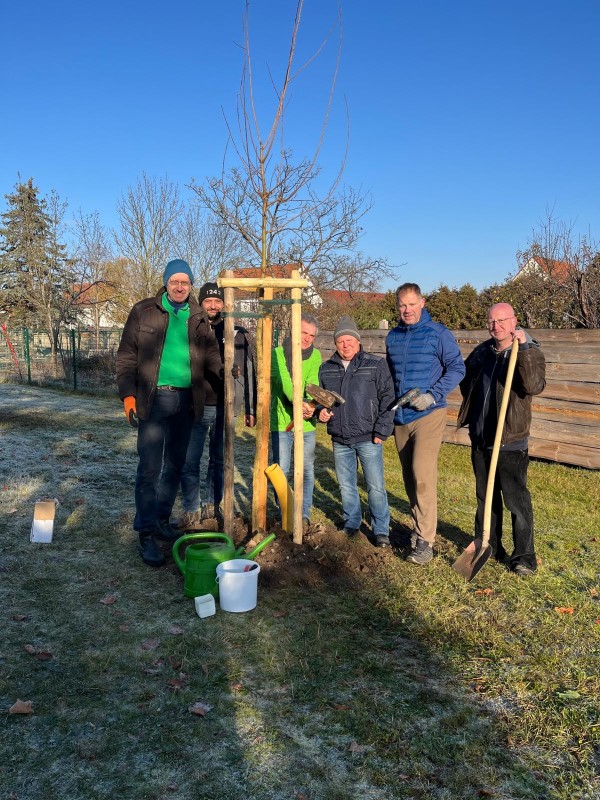 Es war einer der letzten frostfreien Tage Ende November 2025. Der Skatclub hatte von „Niederau bewegt“ die Aufgabe erhalten, einen Baum zu pflanzen. Der Baum, ein Feldahorn, sollte im „Park der Generationen“ in Niederau gepflanzt werden. Wir hatten Glück. Das Pflanzloch hatte die Gartenbaufirma Beck schon ausgehoben. Dennoch, von alleine kommt so ein Baum nicht in die Erde! Also los. Hartmut, Thomas, Matthias, Roland, Falko und Stefan legten sich mächtig ins Zeug. Wir haben ihn schon mehrfach gegossen.
