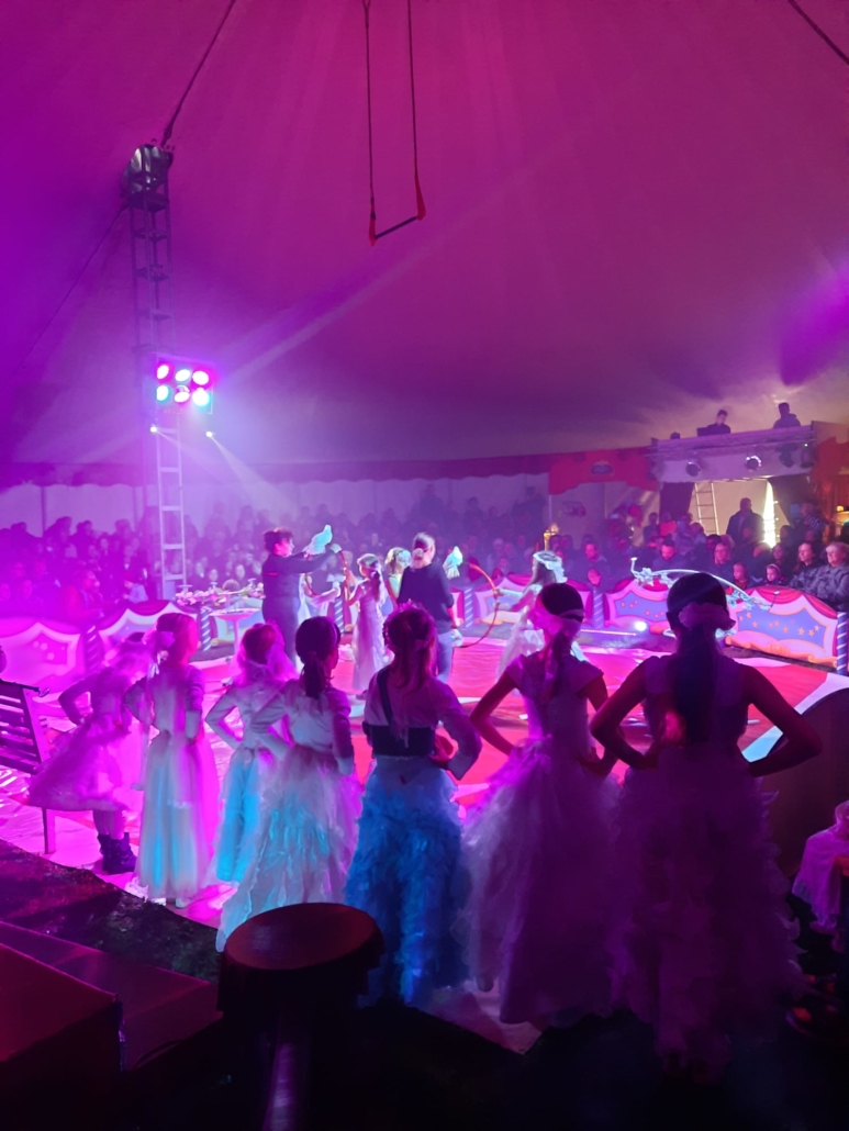 Der Lohn für die harte Arbeit waren drei gelungene Veranstaltungen in einem voll gefüllten Zirkuszelt mit leuchtenden Augen, begeisterten Zuschauern und tosendem Applaus. Bunte Kostüme, singende Kinder und applaudierende Gäste schufen eine besondere und für alle unvergessliche Atmosphäre.