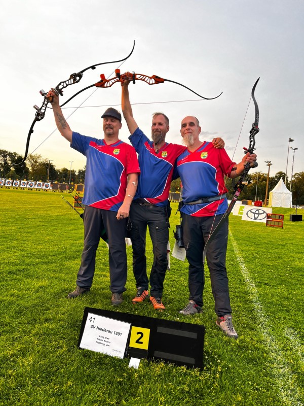 Dort wartete am Abend die erste Mannschaft des SV Kadeltshofen, die als klarer Favorit galt und in der Qualifikation sowie den Vorrunden eine beeindruckende Dominanz gezeigt hatte. Der Finalkampf begann denkbar schlecht für die beiden Finalmannschaften, bei sich veränderndem Licht und auffrischendem Wind. Die Schützen von Kadeltshofen kamen mit den veränderten Bedingungen besser zurecht, sodass es schnell 4:0 stand. Doch das Blatt wendete sich in der dritten Passe. Die Favoriten zeigten Nerven, und das Team aus Niederau nutzte diese Chance. Mit einem entscheidenden letzten Pfeil von Uwe Lang, der eine perfekte 10 traf, sicherten sie sich den Satz und verkürzten auf 4:2.