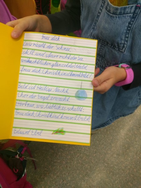Auch in jedem Klassenzimmer war die weihnachtliche Stimmung spürbar. Es wurde gebastelt und gemalt, Märchen wurden vorgelesen und betrachtet und überall erklangen weihnachtliche Lieder.