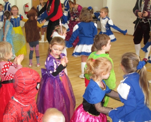 Die Vielfalt an fantasievollen Verkleidungen war riesig. Begrüßen konnten wir, Prinzessinnen, Piraten, wilde Tiere, Clowns uns sogar Drachen und Dino’s.