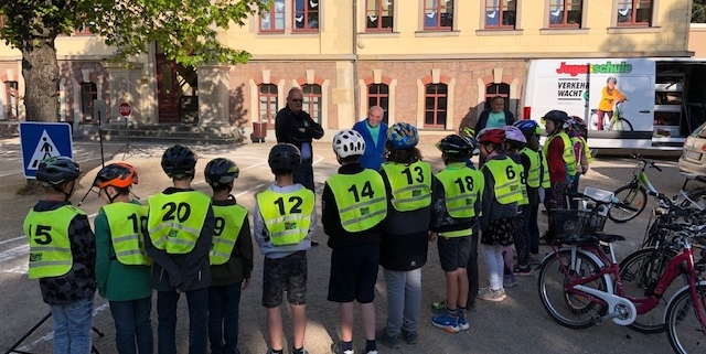 Das ist ein wesentlicher Bestandteil des Lernens in der Grundschule, welcher in der vierten Klasse seinen Abschluss in der theoretischen und praktischen Fahrradausbildung findet.