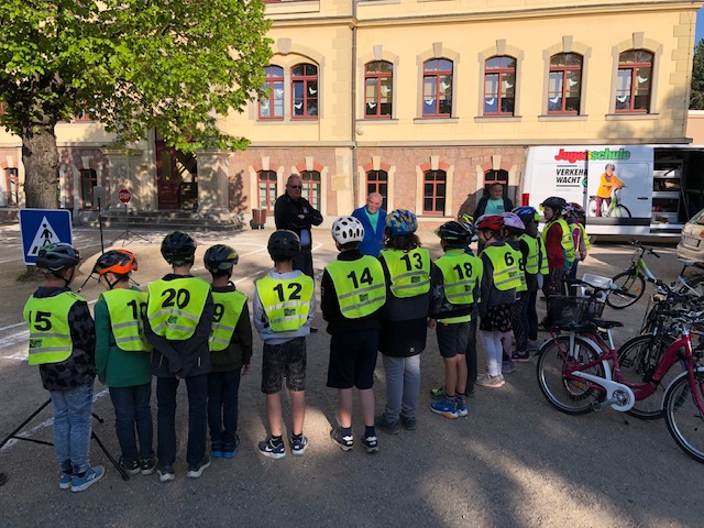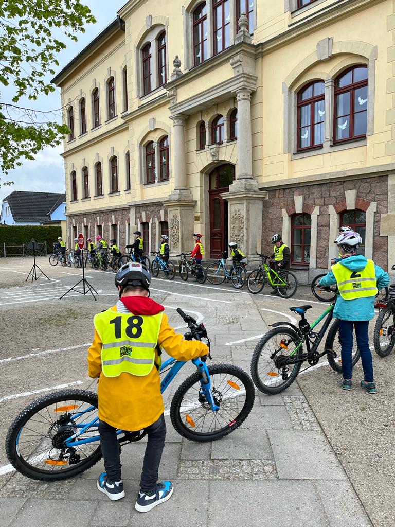 Das ist ein wesentlicher Bestandteil des Lernens in der Grundschule, welcher in der vierten Klasse seinen Abschluss in der theoretischen und praktischen Fahrradausbildung findet.