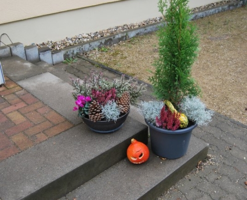 Nachdem uns der Bauhof frische Erde gebracht hat, machten wir uns mit ein paar Kindern auch sogleich ans Werk. Zunächst wurden unsere Pflanzenkästen für die Fenster bepflanzt. Danach hatten wir sogar noch Pflanzen übrig und konnten einige tolle, dekorative Arrangements gestalten.