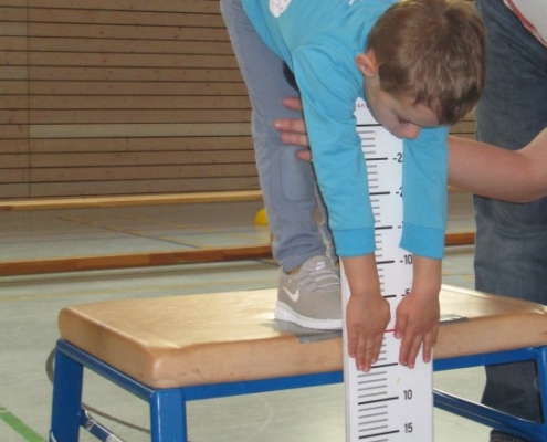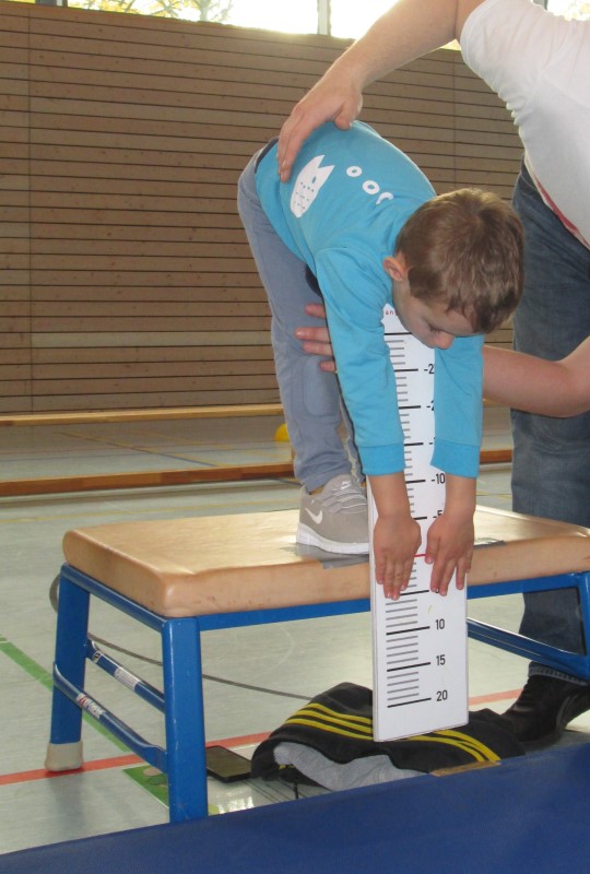 Es waren 7 Flizzy Stationen aufgebaut, an denen die Kinder ihre Sportlichkeit unter Beweis stellen konnten. Pendellauf, Purzelbaum oder Rollen um die Längsachse, Standweitsprung, Rumpfbeugen, Zielwerfen, Balancieren und Hampelmann (Fünfjährige) oder Hin- und Herspringen (Vierjährige). Dabei sammelten die Kinder ein, zwei oder drei Punkte. Die Punkte wurden dann auf der Urkunde von den Wertungsrichtern den einzelnen Disziplinen zugeordnet.