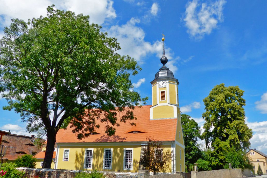 Die der Heiligen Katharina geweihte Kirche, in der sich romanische Bauformen verbergen, ist ein schlichter rechteckiger Saalbau von 1680/1681.