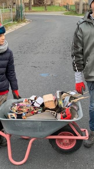 Zusammengetragen wurde ein halber Trettraktor, ein kaputter Taubenschlag und Vogelhaus, Fenster, Schrott, Pumpspritzen, Teppichreste, eine Vielzahl an Glasflaschen und auch Pfand um nur einiges zu benennen.