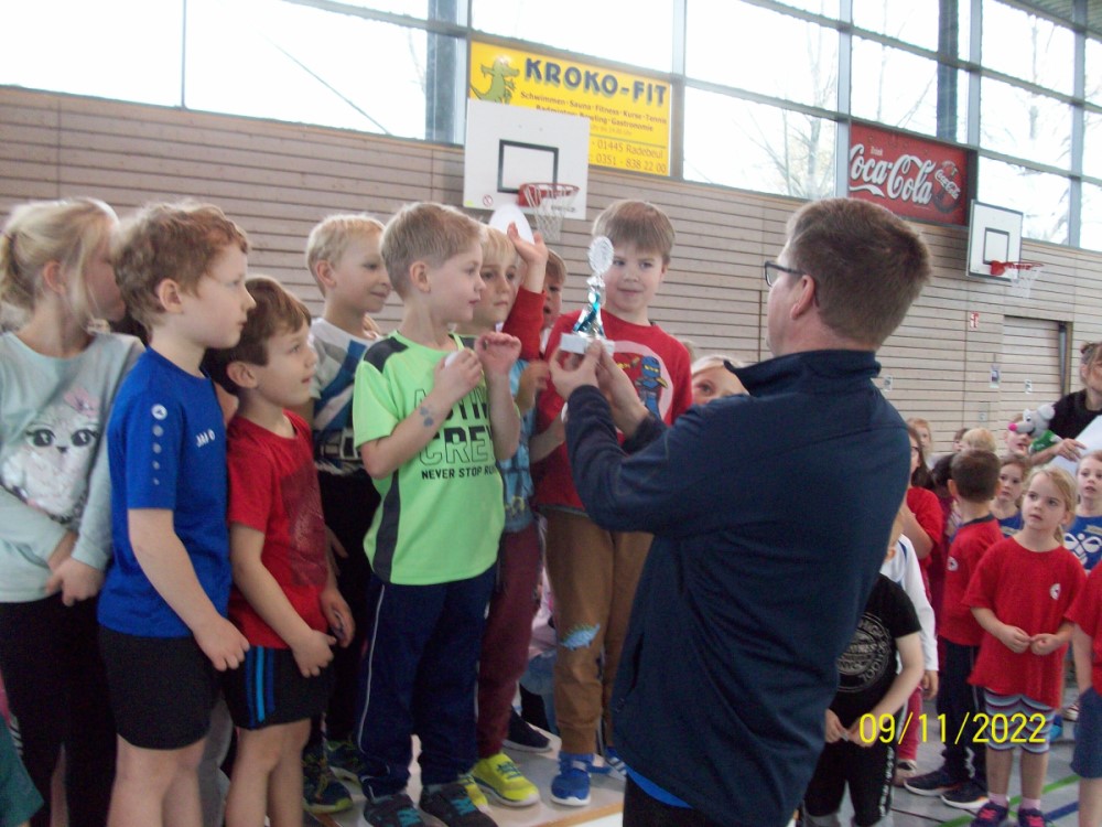 Beim anschließenden Wettkampf der Schulanfänger 2023, erzielen die Kinder der „Raupengruppe“ der Kita den 1. Platz und gewinnen den „Bummi-Pokal“. Beim Slalomlauf, Rollbrettfahren, Bankziehen und anderen sportlichen Herausforderungen, sind unsere Großen einfach nicht zu schlagen!