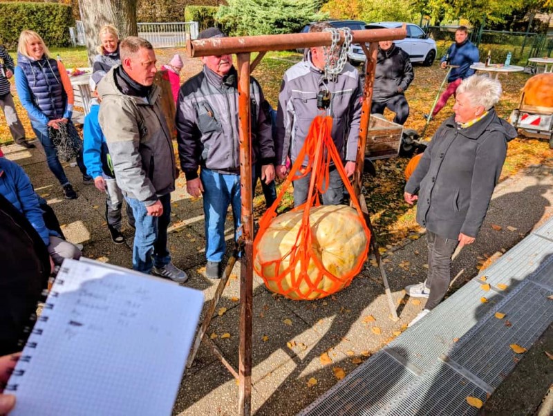 Der Höhepunkt war die Ermittlung des diesjährigen Kürbiskönigs. Zu diesem Zweck hatte der Verein im Frühjahr Kürbiskerne an interessierte Einwohner übergeben. Wie gut dieses Projekt fruchtete, sollte sich an diesem Tag zeigen. Die Konkurrenten begutachteten die zur Schau gestellten Kürbisse und errechneten sich heimlich die Chancen auf den Siegerplatz. Hatten sie doch über den Sommer ihre Schützlinge gehegt und gepflegt und nicht mit Wasser gegeizt.