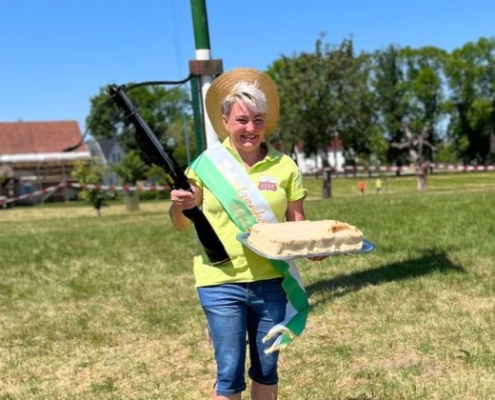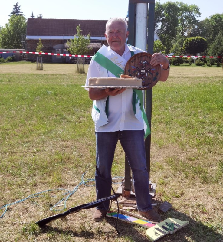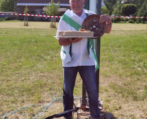 Während es sich die Familien im Festzelt gemeinsam zum Kaffeetrinken mit hausgemachtem Kuchen gemütlich machten, standen sich Holzadler und Schützen auf der Festwiese Aug in Aug gegenüber. Wer wohl dieses Jahr die Trophäe runterholen und als Schützenkönig in die Jessener Chronik eingehen würde? Unter Anfeuerungen und mit Begeisterung zerlegten die Armbrustschützen den Vogel nach und nach in seine Bestandteile. Endlich gab sich der Vogel geschlagen und das letzte Teil fiel getroffen zu Boden. Der neue Schützenkönig 2023 war gefunden und wurde reichlich von allen gefeiert.