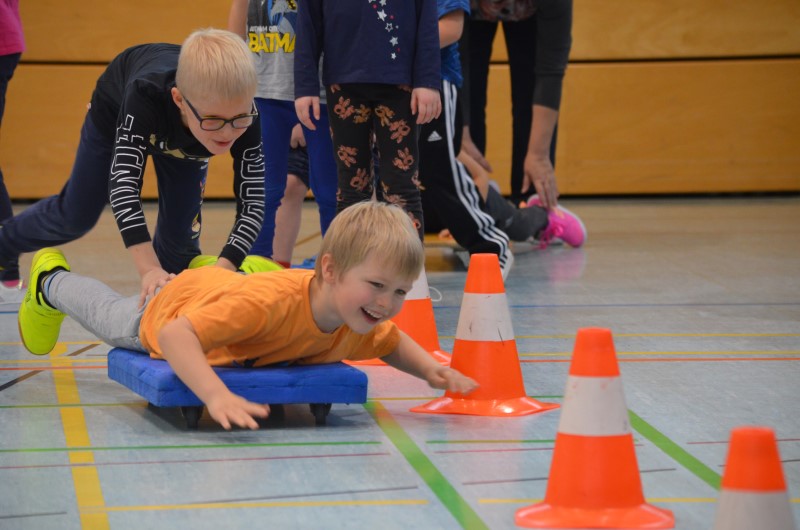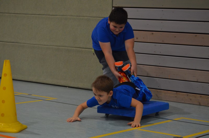 Am Donnerstag, den 04. November, fuhren die Vorschüler zusammen mit der Raupengruppe und ihren Erzieherinnen, Eltern und Großeltern mit dem Sonderbus nach Meißen in die BSZ- Halle zum „Bummi-Pokal“. Endlich in der Sporthalle angekommen, stieg bei allen Kindern die Vorfreude auf dieses Sportevent. Doch es hieß noch ein bisschen Geduld haben, bis es los ging. Also haben wir uns in der Zwischenzeit mit den unterschiedlichsten Übungen erwärmt. Dann fiel der Startschuss und wir konnten an mehreren Stationen sportliche Aktivitäten austesten, wie z.B. Korbwerfen, Balance halten, Unihockey und mit dem Schwungtuch verschiedene Sachen ausprobieren. Als alle Stationen von uns absolviert waren, stand noch der Staffellauf einer Gruppe von Vorschulkindern an. Sie mussten schnell über Bänke balancieren, unter einem Hocker durchkriechen und im Slalom laufen. Das habt ihr echt spitze gemacht! Zum Abschluss haben alle Kinder eine Medaille erhalten und für unsere Kita gab es den „Bummi-Pokal“.
