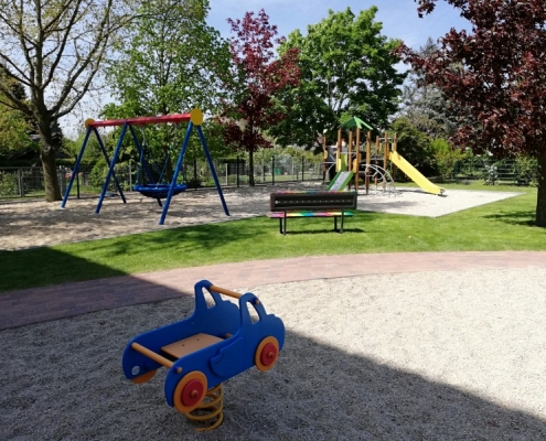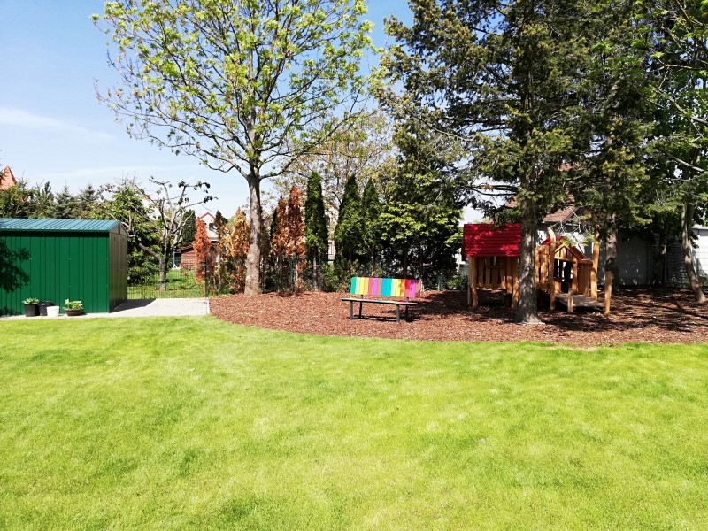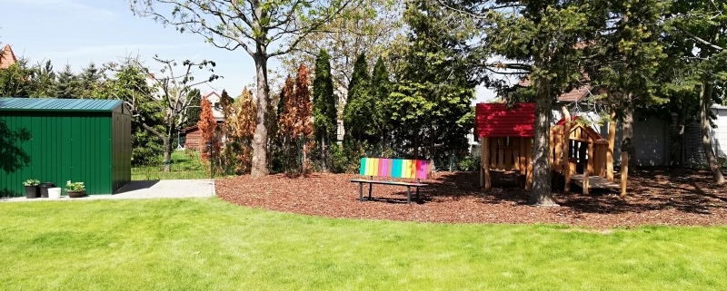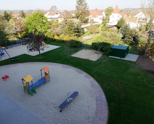 Am 23. April 2019 war es endlich soweit: die letzten Bauzäune wurden entfernt und alle Kinder machten sich neugierig auf eine erste Erkundungstour durch den Garten. Sogleich wurden die neuen Spielgeräte ausprobiert und jedes Kind entdeckte für sich eine Lieblingsecke im neuen Garten: ob nun beispielsweise die neuen Klettergerüste, die große Nestschaukel, der Sandkasten oder doch lieber das Holzspielhaus unter den Bäumen, für jeden ist etwas dabei.