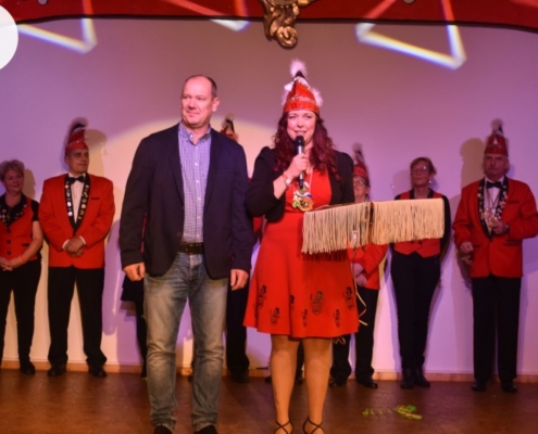 Nachdem wir aus den Händen unseres Bürgermeisters den Rathausschlüssel, und somit die „Machtgewalt“ für die närrische Zeit übernommen hatten, konnten unsere Husaren das Prinzenpaar in den Saal führen. Überrascht war nur der „neue“ Besucher beim NKC, denn das Prinzenpaar war das aus der letzten Saison – bekanntlich regiert unser Prinzenpaar stets 2 Jahre. Die nun folgende Prinzenrede war kurz aber aussagestark und nach dem anschließendem Ehrentanz war bei allen Akteuren die Anspannung verflogen und das nun folgende Programm lief wie ein „Länderspiel“