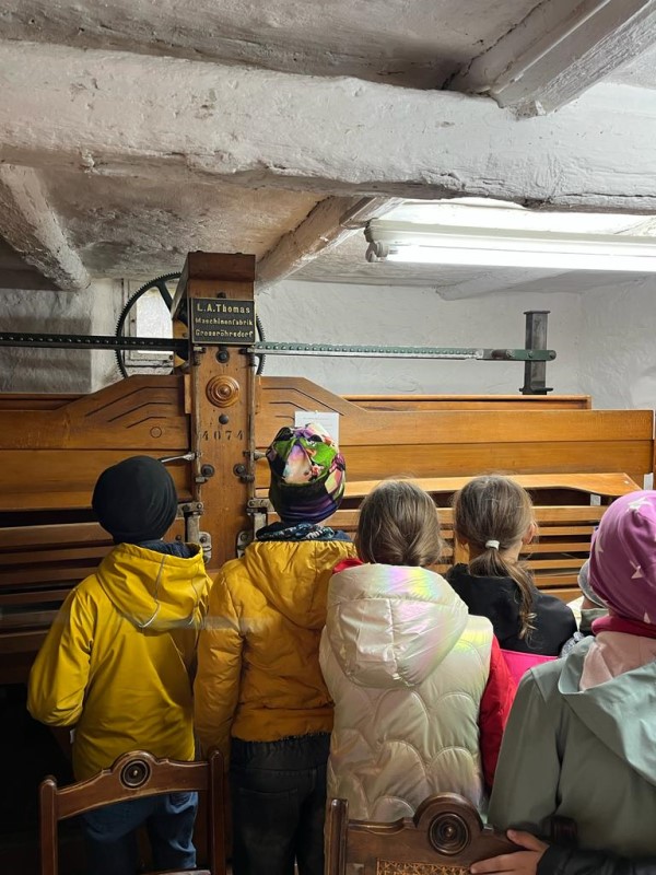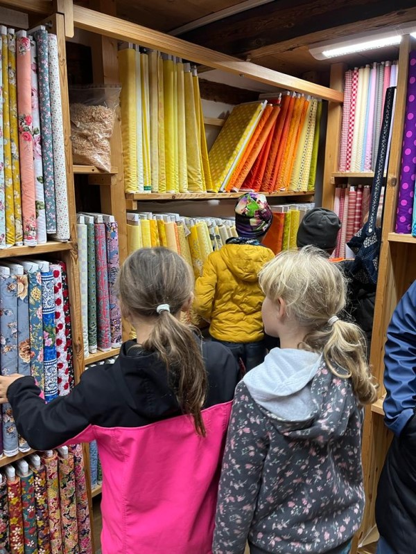 Auch das Handarbeitshaus öffnete seine Türen für die Kinder. Die alte Rolle zeigte eindrucksvoll, was sie noch drauf hat. Hunderte Stoffmuster im Obergeschoss erzeugten bei den Schülerinnen und Schülern leuchtende Augen. Den Satz „Das würde ich gerne kaufen!“, hat man nicht nur einmal gehört.