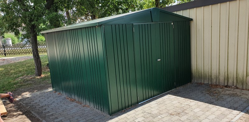 Der Bauhof und unser Hausmeister haben die ersten warmen Frühlingstage genutzt und erst einmal einen geraden und stabilen Untergrund geschaffen. Als dieser fertig war, dauerte es auch nicht mehr lang, bis der neue Schuppen fertig aufgebaut war.