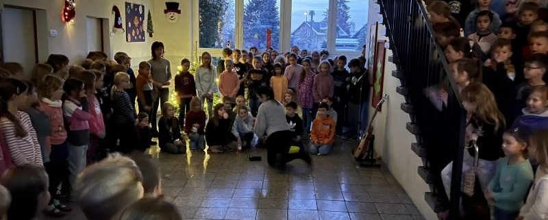 Mit einem gemeinsamen Weihnachtsliedersingen startete die Adventszeit in der Grundschule. Eine ganz besondere Atmosphäre entstand als fast 180 Kinder gemeinsam im liebevoll geschmückten Schulhaus Weihnachtslieder sangen. Alle freuen sich in der Weihnachtszeit auch die kommenden Wochen, mit einem gemeinsamen Singen im Advent zu eröffnen.