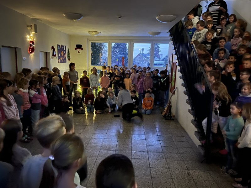 Mit einem gemeinsamen Weihnachtsliedersingen startete die Adventszeit in der Grundschule. Eine ganz besondere Atmosphäre entstand als fast 180 Kinder gemeinsam im liebevoll geschmückten Schulhaus Weihnachtslieder sangen. Alle freuen sich in der Weihnachtszeit auch die kommenden Wochen, mit einem gemeinsamen Singen im Advent zu eröffnen.