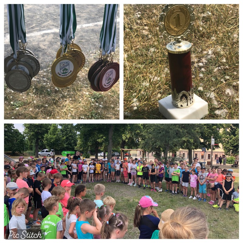 Also fand die Siegerehrung im Schatten unserer herrlichen Linden statt. Unter viel Applaus erhielten die sportlichsten Jungen und Mädchen jeder Klassenstufe die begehrten Medaillen.