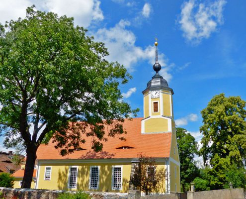 Wer mit dem Zug von Berlin oder Leipzig nach Dresden fährt, wird im Meißner Land von einer Dorfkirche im freundlichen Ocker gegrüßt – der St.-Katharinen-Kirche in Oberau. Zuvor soll an ihrer Stelle eine kleine Marienkapelle gestanden haben, die 1680 abgerissen wurde. Schon nach einem Jahr Bauzeit wurde die neue Kirche eingeweiht.