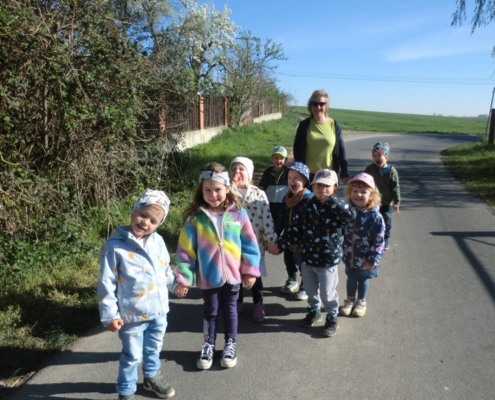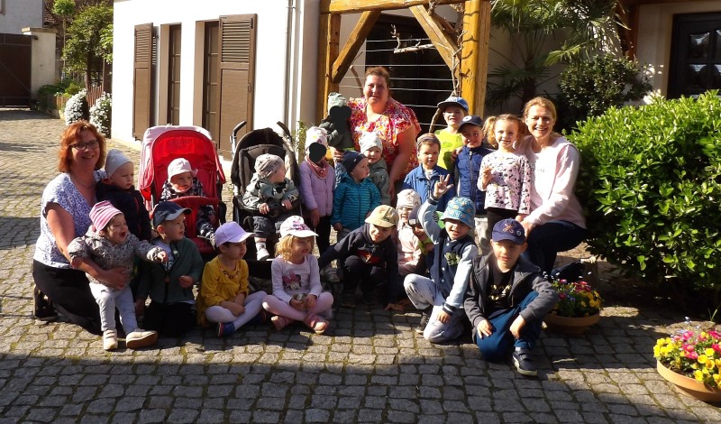 Am 23.04. war unsere Igel- und Mausgruppe der Einladung nach Gröbern gefolgt, um sich den Osterbrunnen mit den bemalten Eiern einmal anzuschauen. Die Kindergartenkinder wanderten zu Fuß und die Krippenkinder wurden in mehreren Krippenwagen geschoben. Vielen Dank an unsere fleißigen Begleiterinnen . Bei Familie Stelzner wurden wir sehr freundlich mit Quarkkeulchen begrüßt und erhielten nach dem Bestaunen des Osterbrunnens noch eine kleine Hofführung, konnten uns die Kaninchen ansehen, im Bienenhaus die Bienen bei der Arbeit beobachten und wer wollte, der durfte sogar einmal im Traktor sitzen. Vielen Dank für die liebevolle Betreuung und Versorgung.