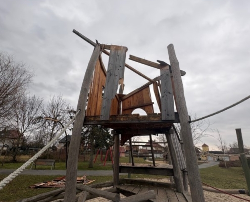 Mit großem Bedauern müssen wir mitteilen, dass das Spielhaus auf dem Mehrgenerationsspielplatz am Siedlerweg in der Silvesternacht mutwillig zerstört wurde. Wir sind erneut erschüttert über die Gleichgültigkeit, mit der fremdes Eigentum beschädigt wird.